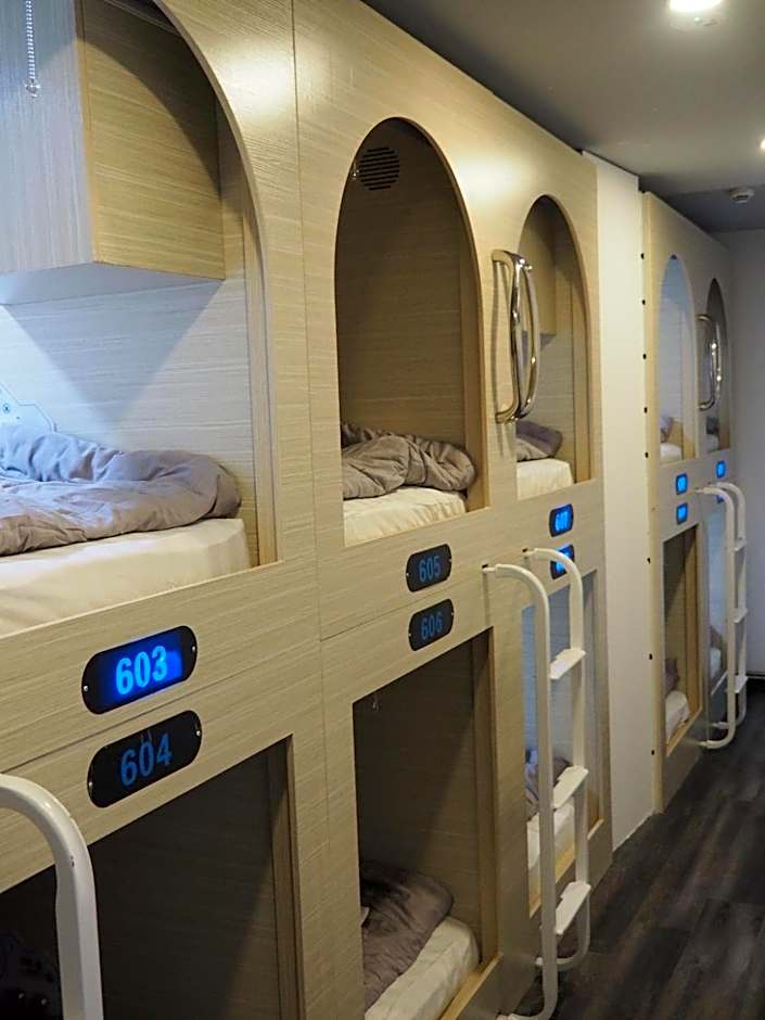 The shared bathroom has a shower, a hairdryer and slippers. The unit features air conditioning, a washing machine, a dining area, as well as tumble dryer. Guests are required to climb a ladder to access this unit.